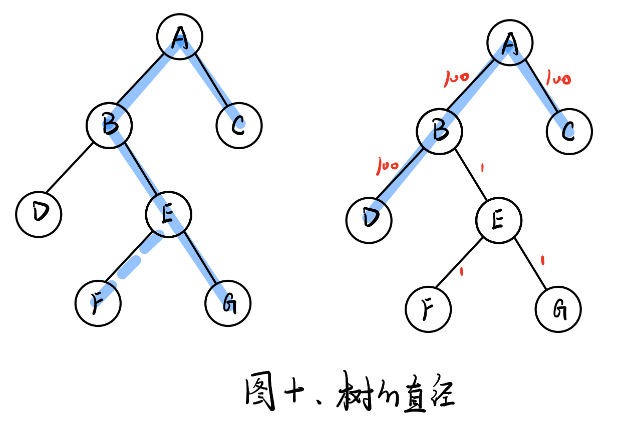 在跟新某孩子节点向上的最长距离时,判断孩子节点的位置,然后选择最长距离或者次长距离即可。