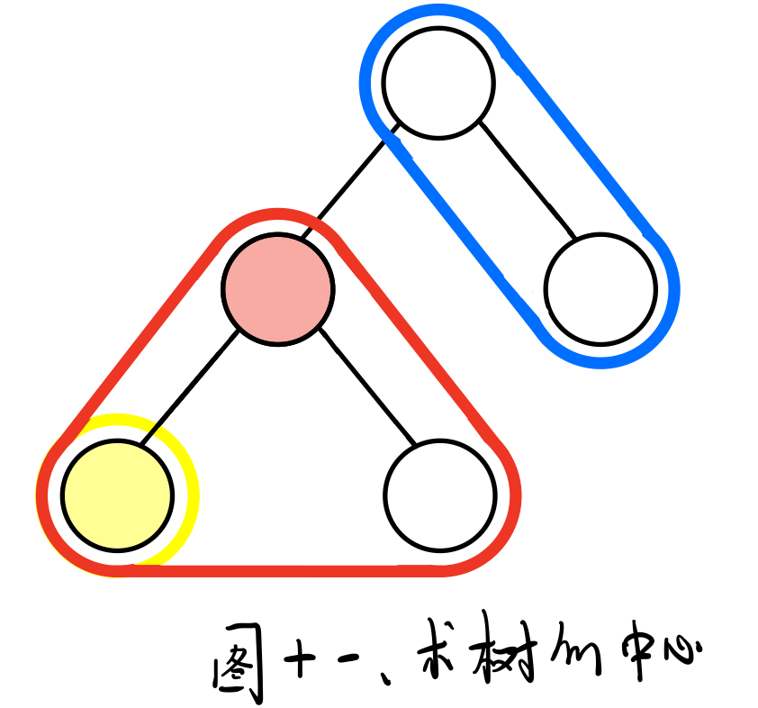 - 把两棵树通过一条边相连,新的树的重心在原来两棵树重心的连线上。